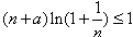 )n+a≤e对任意的n∈N*都成立(其中e是自然对数的底数)。求a的最大值。