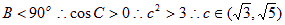 锐角中已知两边a=1,b=2,则第三边c的取值范围是_________