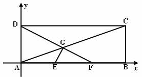 如图,在矩形ABCD中,已知AB=3, AD=1, E、F分别是AB的两个三等分点,AC,DF相交于点G,建立适当的平面直角坐标系,