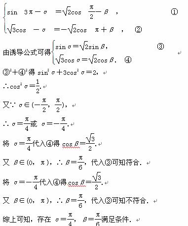 cos(π+β)同时成立?若存在,求出α,β的值;若不存在,请说明理由.