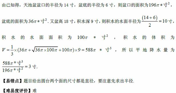 (注:①平地降雨量等于盆中积水体积除以盆口面积;②一尺等于十寸)