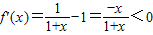 所以f(x)<f(0)=0,即 ln(1+x)<x.
