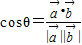 点评:如果已知向量,求向量的夹角,一般是求出两个向量的模及它们的数量积,然后代入公式cosθ=