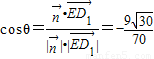 设直线ED1与面EB1C所成角为α,则sinα=|cosθ|=