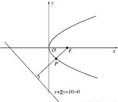 【答案】分析:如图点P到准线的距离等于点P到焦点F的距离,过焦点F作直线x+2y+10=0的垂线,此时d1+d2最小,根据抛物线方程求得F,进而利用点到直线的距离公式求得d1+d2的最小值.