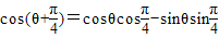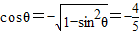 ,求出cosθ,然后求出tanθ,利用两角和的余弦函数求出