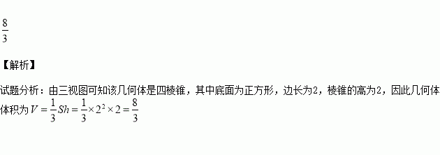 某几何体的三视图如图所示,其正视图是边长为2的正方形,侧视图和俯视图都是等腰直角三角形,则此几何体的体积是 .