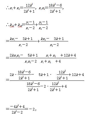 消去y,得(2k2+1)x2-12k2x+18k2-6=0,其中Δ>0,