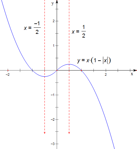 解答 解:f(x)=x(1-|x|)=$\left\{\begin{array}{l}{x(1-x),x≥0}\\{x(1+x),x<0}\end{array}\right.$,