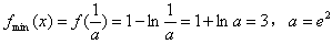 f(x)在x=1处取得极小值为f(1)=1;