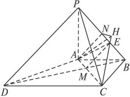 在平面PBC内,过N作NH⊥直线CE于H,连结AH,由于NH是AH在平面CEB内的射影,故AH⊥CE.