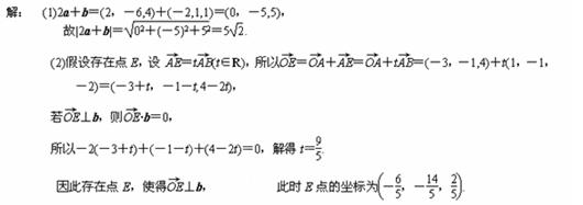 (2)在直线AB上,是否存在一点E,使得⊥b(O为原点)?