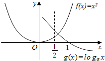 分析 构造函数:设f(x)=x2,g(x)=logax,作出函数图象,利用数形结合得出$\left\{\begin{array}{l}0<a<1\\ f(\frac{1}{2})≤g(\frac{1}{2})\end{array}\right.$,解出a的范围即可.