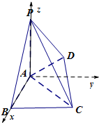 (Ⅱ)解:建立如图所示空间直角坐标系A-xyz,则P(0,0,2),D(-1,1,0),B(2,0,0),C(2,2,0)