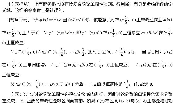 ,0)内单调递增,则a的取值范围是 ( )