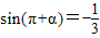 【答案】分析:由题意和诱导公式求出sinα,再由诱导公式对