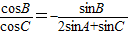 =2sinAcosB+sin(C+B)=2sinAcosB+sinA=sinA(2cosB+1)=0,