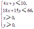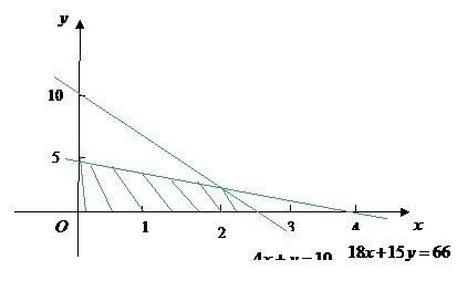 一个化肥厂生产甲、乙两种混合肥料,生产1车皮甲种肥料的主要原料是磷酸盐4t,硝酸盐18 t;生产1车皮乙种肥料需要的主要原料是磷酸盐1t,硝酸盐15 t.现库存磷盐10 t,硝酸盐66 t,在此基础上生产这两种混合肥料.列出满足生产条件的数学关系式,并画出相应的平面区域.
