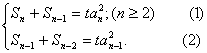 已知数列{an}满足Sn+Sn-1=tan2(t>0,n≥2),且a1=0,n≥2时,an>0,Sn其中是数列{an}的前n项和。