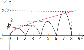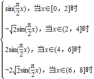 【答案】分析:根据已知条件先求出函数y=f(x)在区间[0,8]上的解析式,然后再同一坐标系中画出函数y=f(x)、y=