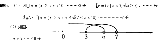(本小题满分12分)已知集合(1)求 (2)若的取值范围.