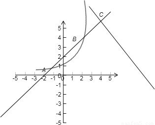 y=x+2 与y=2x交点是A、B,y=x+2与 y=10-x的交点为C(4,6),