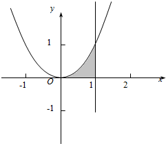 17.曲线y=x2与直线y=0,x=0,x=1 所围成的封闭图形的面积为$\frac{1}{3}$.分析 先根据题意画出区域,然后依据图形得到积分下限为0,积分上限为1,从而利用定积分表示出曲边梯形的面积,最后用定积分的定义求出所求即可.