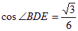 正四面体S-ABCD中,D为SC的中点,则异面直线BD与SA所成角的余弦值是______________。
