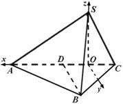 由俯视图、侧视图知,点S在平面ABC上的正投影为DC的中点O,