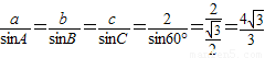 在△ABC中,角A,B,C对的边分别为a,b,c,且c=2,C=60°.(1)求