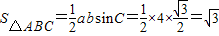 (2)由余弦定理求出ab=4,然后根据三角形的面积公式求出答案.