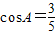 ∵bsinC≠0,∴3-5cosA=0,即