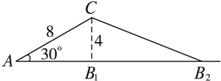 思路分析:由图可知,当BC=4时,三角形有一解,当BC≥8时,三角形有一解.