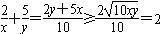 当且仅当2y=5x,即x=2,y=5时等号成立。