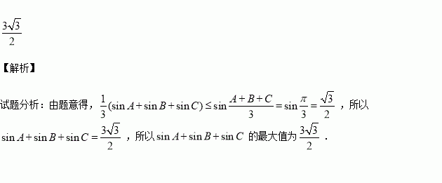 凸函数的性质定理为:如果函数在区间上是凸函数,则对于区间内的任意,有,已知函数在区间上是凸函数,则在中,的最大值为________.