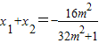 消去y,整理得(32m2+1)x2+16m2x+2m2-2=0.