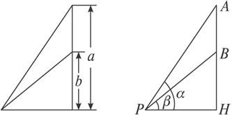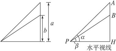 思路分析:设学生P距黑板x m,黑板上、下边缘与学生P的水平视线PH的夹角分别是∠APH=α,∠BPH=β,其中α>β,则学生看黑板的视角为α-β,剩下的就是如何把α-β与变量x联系起来建立一个数学模型的问题了.