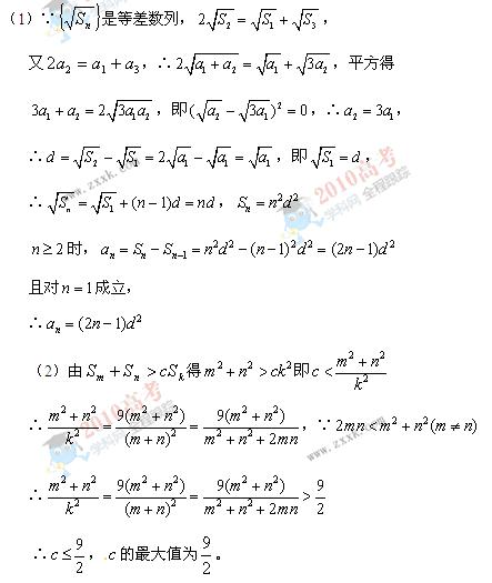(2)设c为实数,对满足m+n=3k且m≠n的任意正整数m,n,k,不等式S