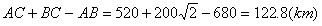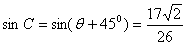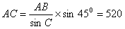 如图,一架飞机原计划从空中A处直飞相距680km的空中B处,为避开直飞途中的雷雨云层,飞机在A处沿与原飞行方向成θ角的方向飞行,在中途C处转向与原方向线成45°角的方向直飞到达B处,已知sinθ=