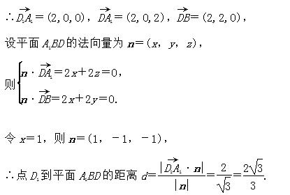 则D1(0,0,2),A1(2,0,2),D(0,0,0),B(2,2,0),