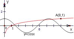 解:在同一坐标系中画出函数y=cosx与y=log8x图象,