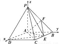 (2) 无论点E在BC边的何处,都有PE⊥AF,可建立空间坐标系设点E(x,1,0),求出两向量PE、AF的坐标,用内积为0证两线垂直.