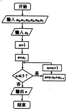 解:根据秦九韶算法先把多项式改写为f(x)=((((x+ 1)x+2)x+1)x+3)x+1的形式,再由内到外计算多项式,当x=2时的值,程序框图如图所示: