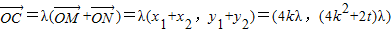 把直线方程代入抛物线方程并整理得:x2-4kx-4t=0