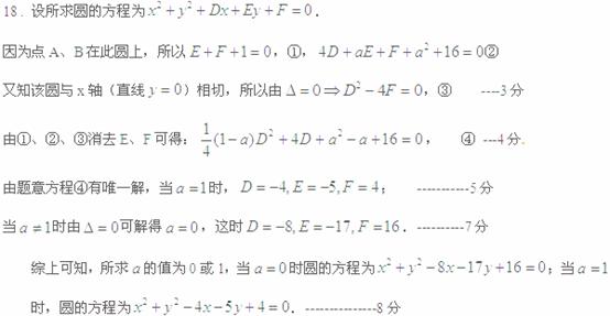 已知过A(0,1)和B(4,a)且与x轴相切的圆只有一个,求a的值及圆的方程.