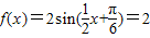 【答案】分析:(1)根据图象求出A,T,求出ω,图象经过(0,1),求出φ,然后求f(x)的解析式,根据(x,2)求x的值;