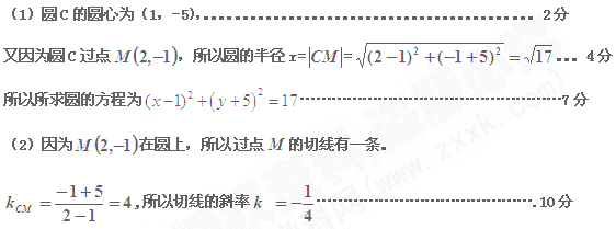 解:圆可化为:,圆心为(1,-5)所以所求的切线方程为,即