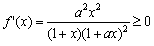 (I)若f(x)在(0,+∞)内为单调增函数,求a的取值范围;