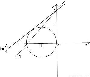 解:∵直线y=kx+2与圆x2+y2+2x=0只在第二象限有公共点