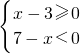 解得3≤x<7